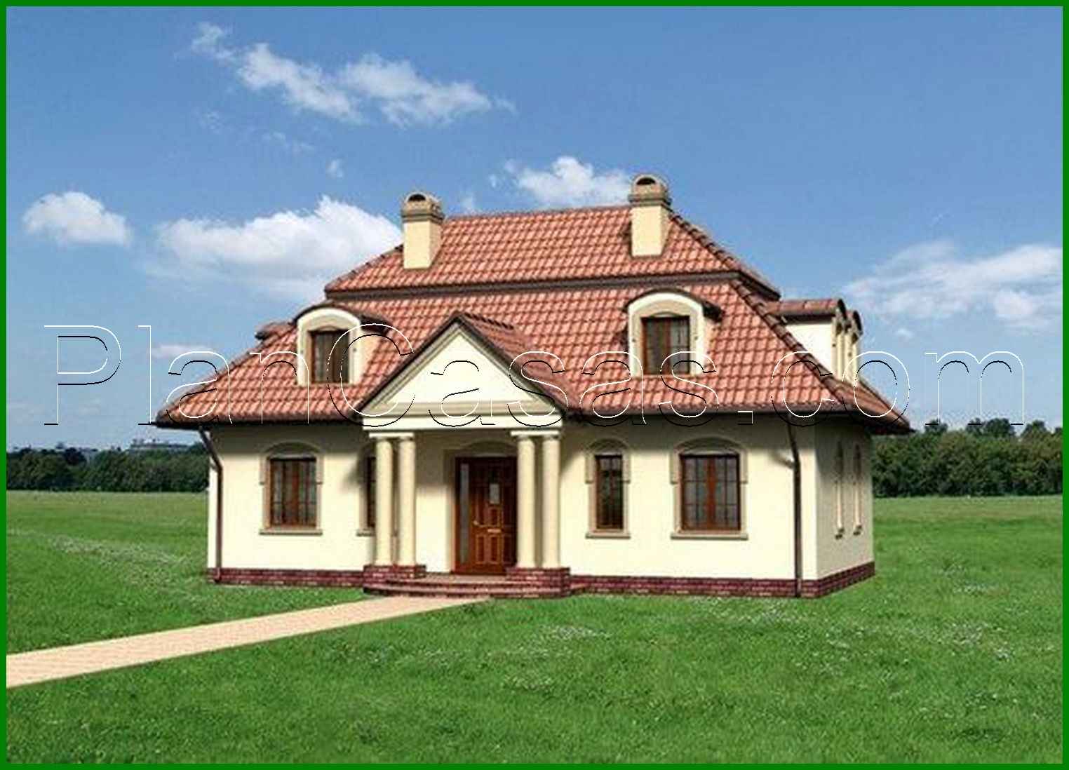 Classic style mansion with columns Number of floors: 3 Total area: 198.00 m2 Living Area: 152.30 m2 House height: 8.50 m Ceiling Height: 2.80 m Roof Angle: 40 ° Roof area: 222.00 m2 Cubic capacity: 778.00 m3 Number of bedrooms: 4 Number of bathrooms: 4 Minimum plot size (length): 21.10 m Minimum plot size (width): 20.10 m Built-up area: 120 m2 Ground floor area: 17.90 m2 Materials: Walls: aerated concrete, ceramic blocks Overlap: monolithic overlap Roofing: ceramic tile, metal tile, cement-sand tile Foundation: monolithic tape