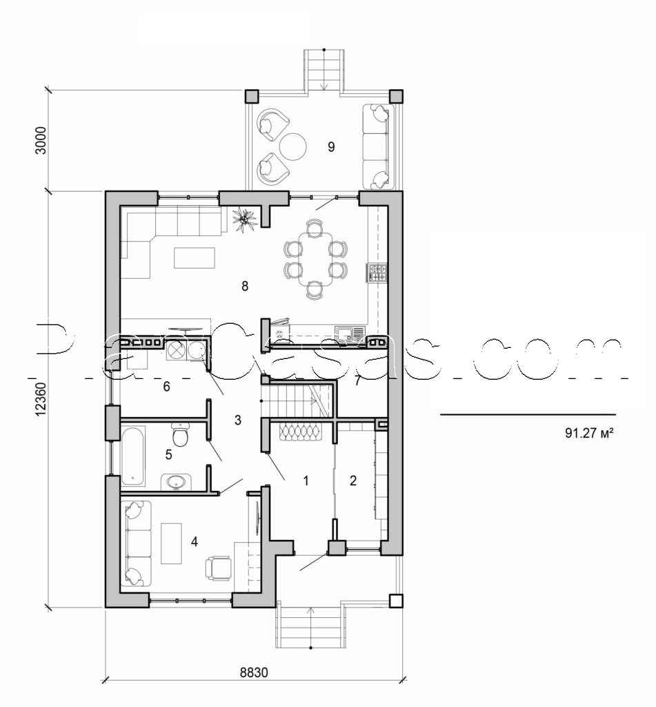181. The project of a bright stylish classic house with an attic and a garage for a car
