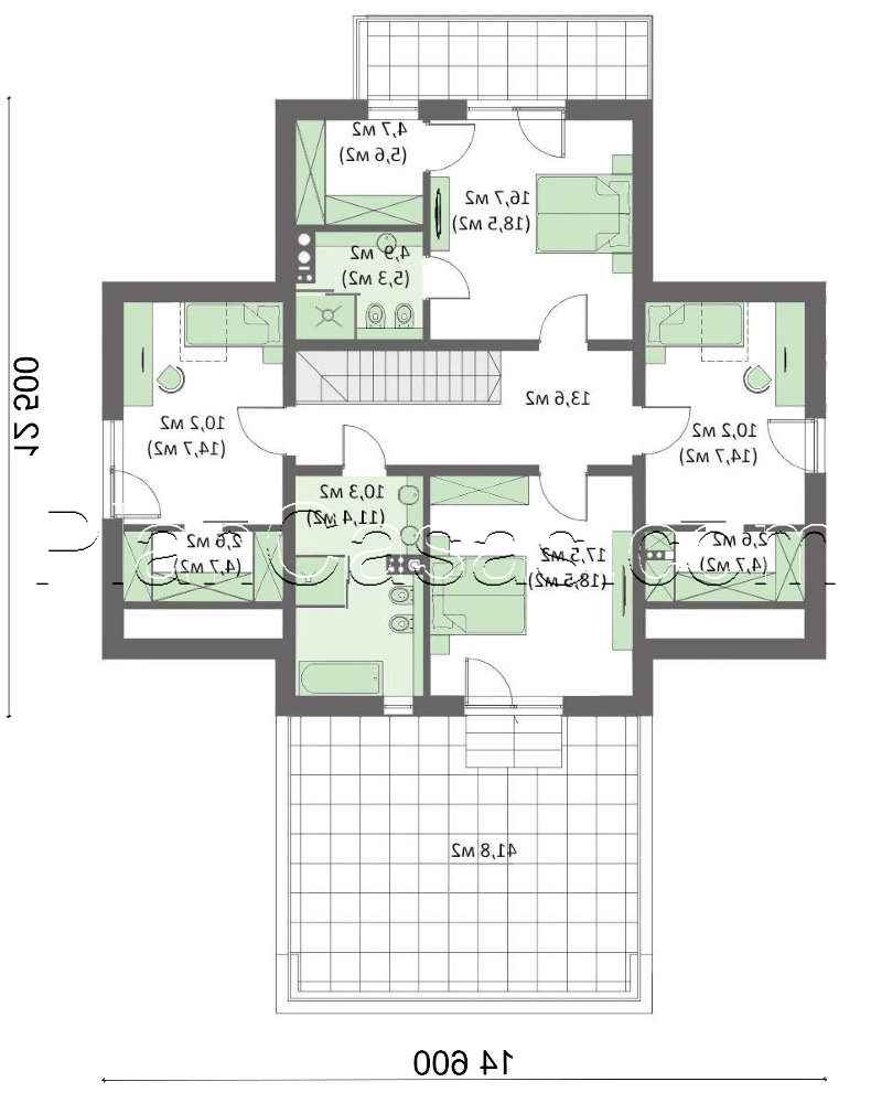 Number of floors: 2 Total area: 317.00 m2 Living Area: 201.00 m2 House height: 8.00 m Ceiling Height: 2.80 m Roof Angle: 37 ° Roof area: 244.00 m2 Cubic capacity: 1095.00 m3 Number of bedrooms: 4 Number of bathrooms: 3 Garage: Two-car garage Minimum plot size (length): 27.50 m Minimum plot size (width): 20.60 m Built-up area: 195 m2 Materials: Walls: aerated concrete, ceramic blocks Overlap: monolithic overlap Roofing: ceramic tile, metal tile, cement-sand tile Foundation: monolithic tape