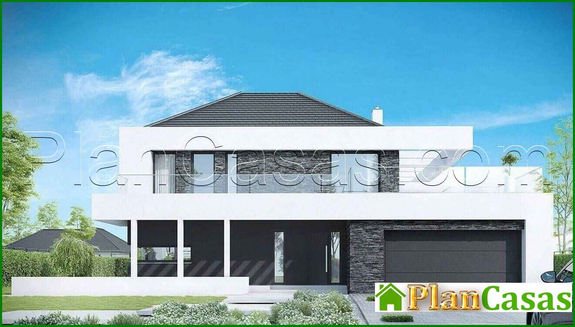 Two-story residential building with spacious verandasNumber of floors: 2Total area: 370.49 m2Living Area: 186.56 m2House height: 9.09 mCeiling Height: 2.80 mRoof Angle: 30 °Roof area: 111.00 m2Cubic capacity: 1091.00 m3Number of bedrooms: 3Number of bathrooms: 3Garage: Two-car garageMinimum plot size (length): 18.50 mMinimum plot size (width): 23.00 mBuilt-up area: 182.96 m2Materials:Walls: aerated concrete, ceramic blocksOverlap: monolithic overlapRoofing: ceramic tile, metal tile, cement-sand tileFoundation: monolithic tape