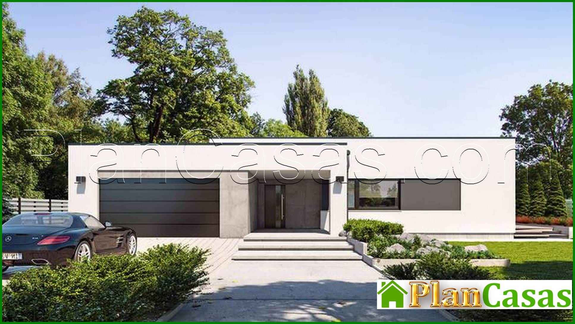 Modern one-story snow-white cottage Number of floors: 1 Total area: 202.52 m2 Living Area: 99.91 m2 House height: 4.72 m Ceiling Height: 2.80 m Roof Angle: 2 ° Cubic capacity: 1030.00 m3 Number of bedrooms: 4 Number of bathrooms: 3 Garage: Two-car garage Minimum plot size (length): 24.50 m Minimum plot size (width): 27.50 m Built-up area: 257.12 m2 Materials: Walls: aerated concrete, ceramic blocks Overlap: monolithic overlap Roofing: PVC membrane Foundation: monolithic tape