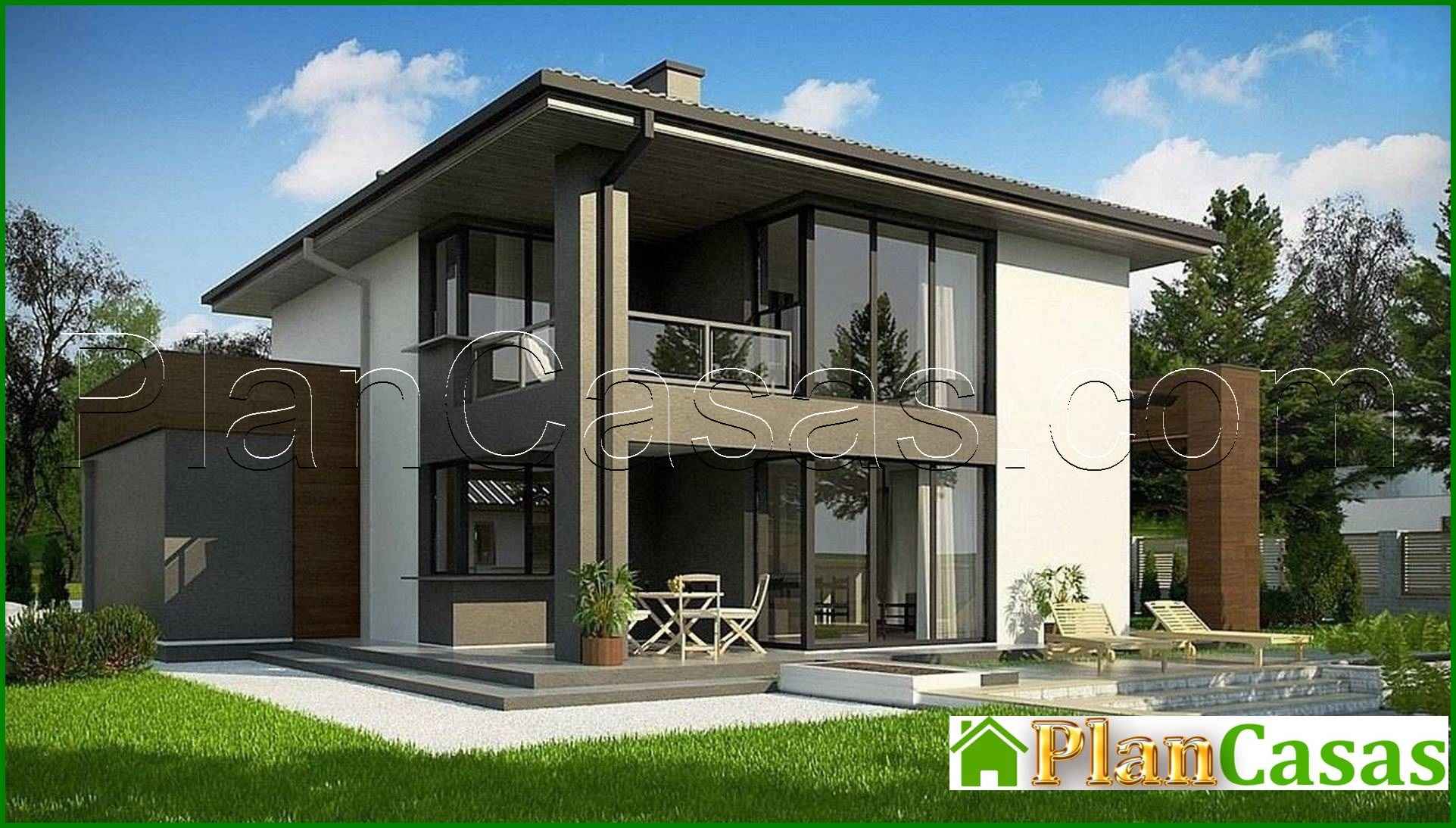 Two-storey cottage with large panoramic windows and a spacious terrace Number of floors: 2 Total area: 169.89 m2 Living Area: 74.95 m2 House height: 8.80 m Ceiling Height: 2.80 m Roof Angle: 20 ° Roof area: 158.00 m2 Cubature: 398.00 m3 Number of bedrooms: 3 Number of bathrooms: 2 Garage: Two-car garage Minimum plot size (length): 18.66 m Minimum plot size (width): 20.86 m Built-up area: 226.6 m2 Materials: Walls: aerated concrete blocks Overlap: monolithic overlap Roofing: metal tile, ceramic tile, bitumen Foundation: monolithic tape