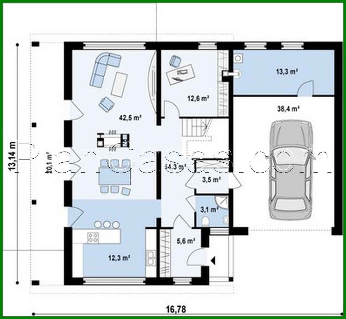 355. Project of a two-storey modern cottage with a terrace and a garage
