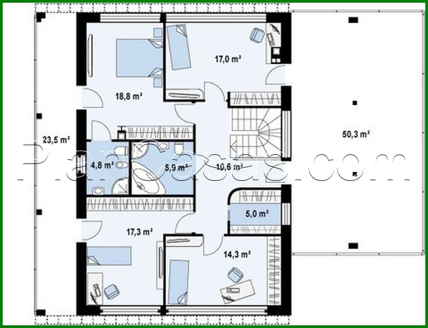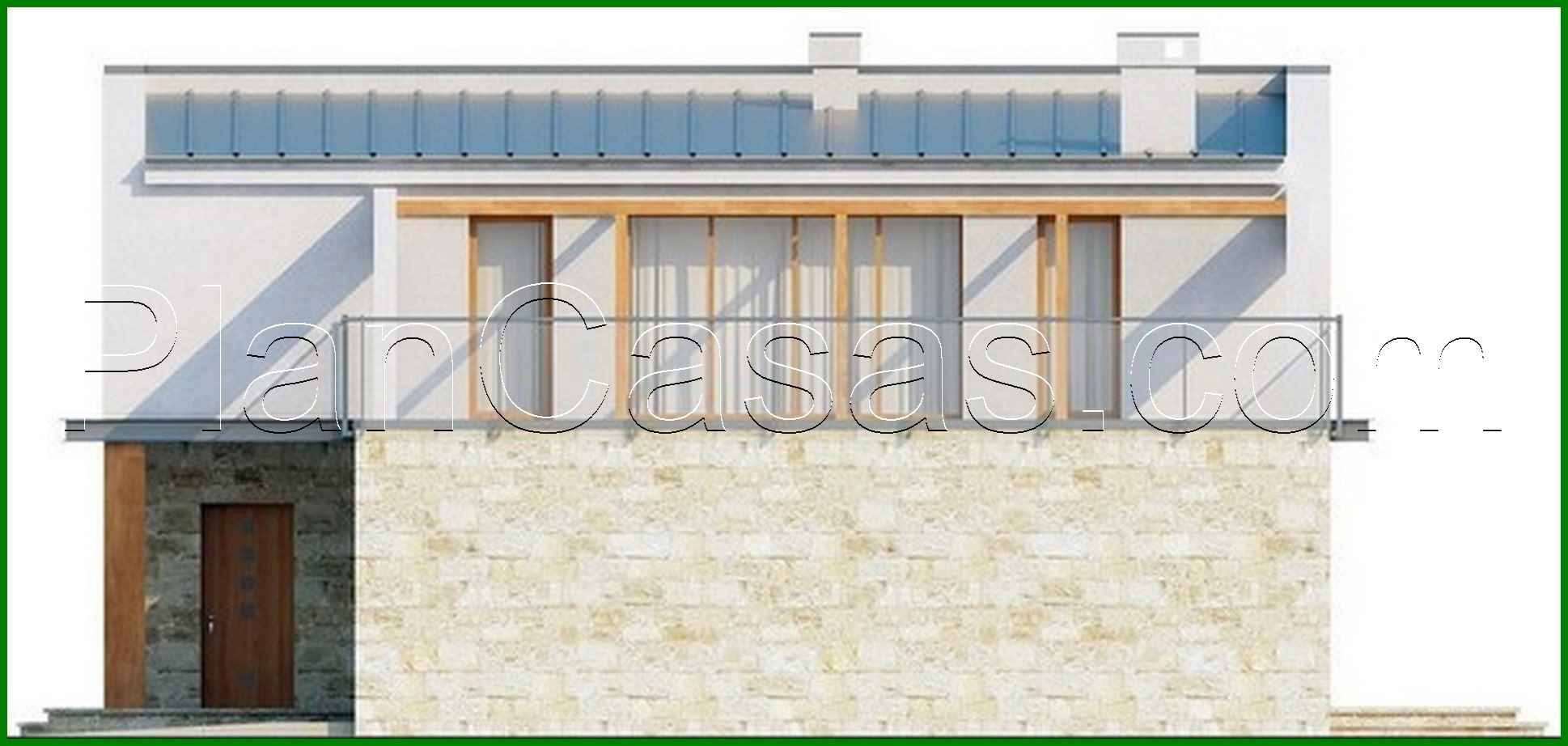 Project of a two-storey modern cottage with a terrace and a garage Number of floors: 2 Total area: 239.20 m2 Living Area: 187.60 m2 House height: 7.20 m Ceiling Height: 2.80 m Roof Angle: 6 ° Roof area: 117.00 m2 Cubic capacity: 669.80 m3 Number of bedrooms: 5 Number of bathrooms: 3 Garage: Garage for one car Minimum plot size (length): 21.41 m Minimum plot size (width): 22.78 m Materials: Walls: aerated concrete, ceramic blocks Overlap: monolithic overlap Roofing: PVC membrane Foundation: monolithic tape