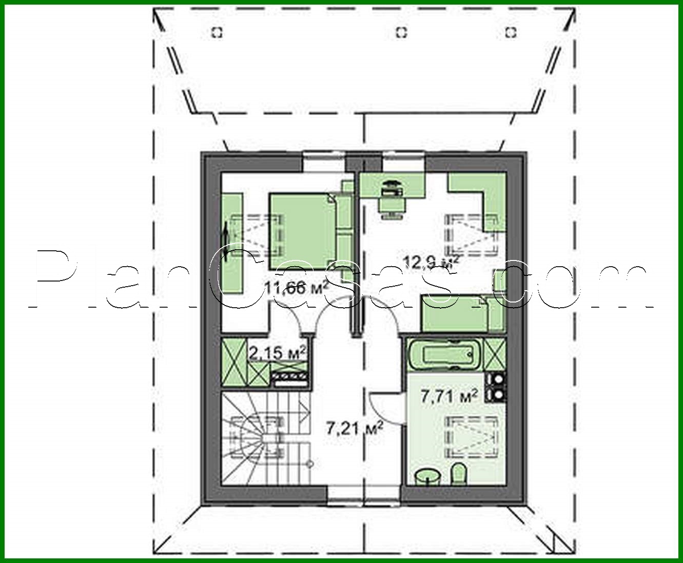 Compact cottage with an attic 80 m² Number of floors: 2 Total area: 92.84 m2 Living Area: 24.56 m2 House height: 8.01 m Ceiling Height: 2.80 m Roof Angle: 45 ° Roof Area: 146.59 m2 Cubic capacity: 193.00 m3 Number of bedrooms: 2 Number of bathrooms: 2 Minimum plot size (length): 15.70 m Minimum plot size (width): 15.20 m Built-up area: 93.6 m2 Materials: Walls: aerated concrete Overlap: monolithic overlap Roofing: ceramic tile, metal tile, cement-sand tile Foundation: monolithic tape