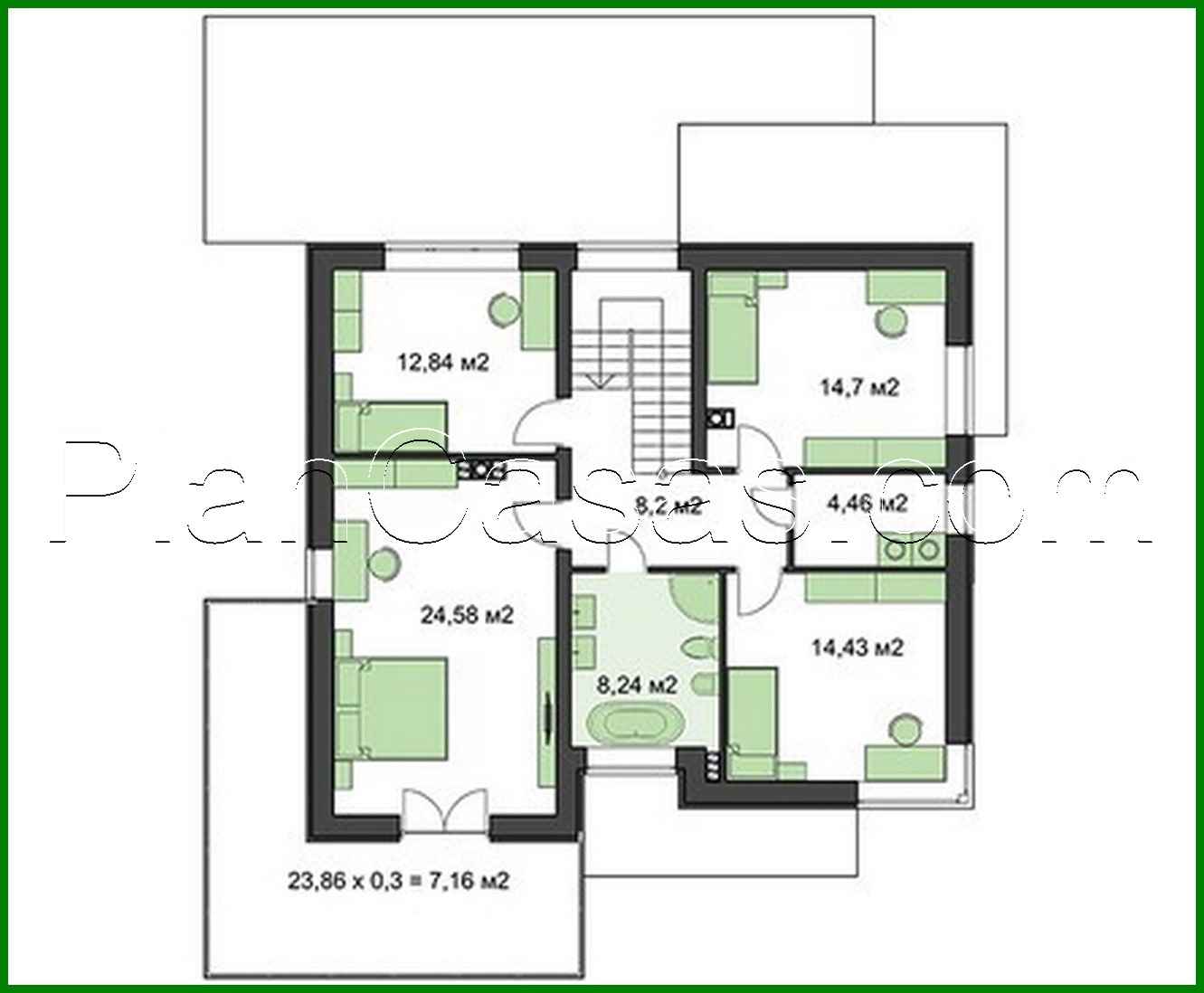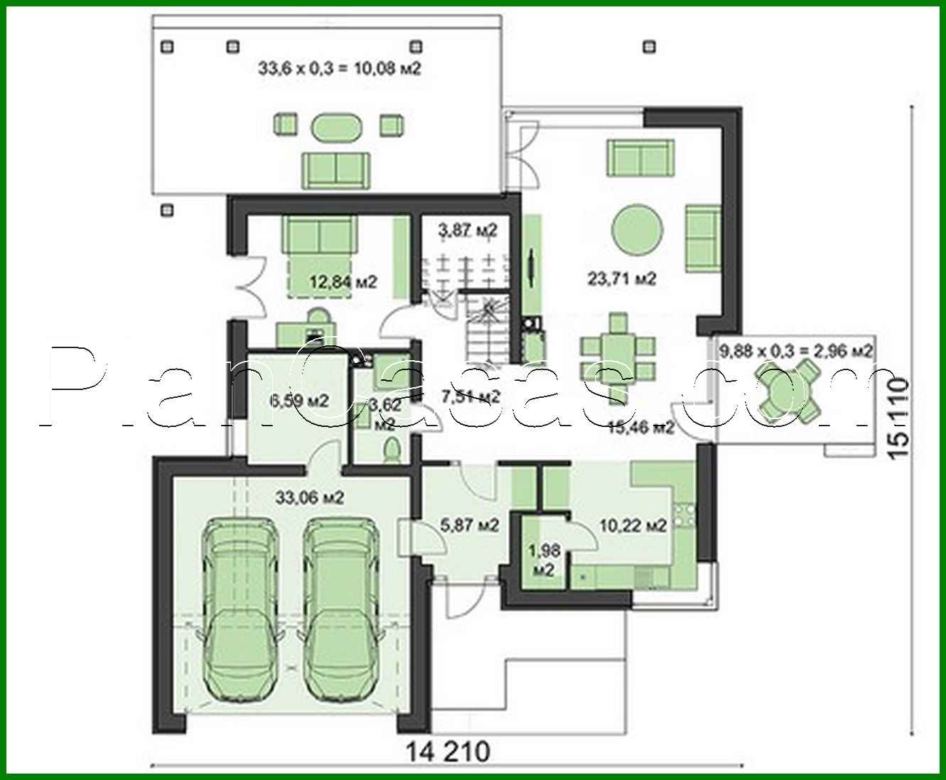 Stylish house with spacious verandas and terraces Number of floors: 2 Total area: 232.38 m2 Living Area: 118.56 m2 House height: 7.00 m Ceiling Height: 2.80 m Roof Angle: 1.7 / 3.5 ° Roof area: 143.00 m2 Cubic capacity: 602.00 m3 Number of bedrooms: 5 Number of bathrooms: 2 Garage: Two-car garage Minimum plot size (length): 23.00 m Minimum plot size (width): 22.20 m Built-up area: 176 m2 Materials: Walls: aerated concrete, ceramic blocks Overlap: monolithic overlap Roofing: PVC membrane Foundation: monolithic tape