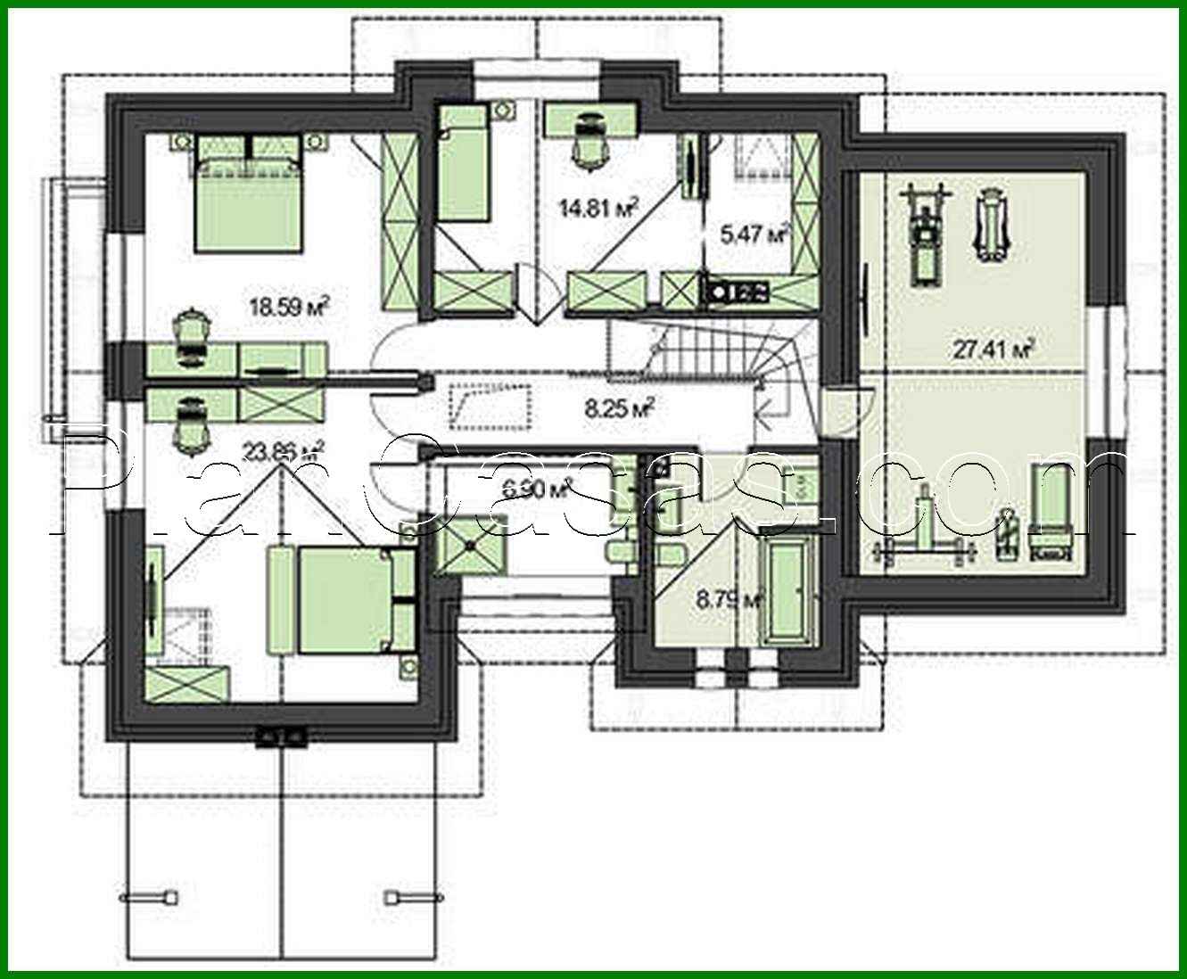 The original house with spacious personal rooms Number of floors: 2 Total area: 242.87 m2 Living Area: 105.40 m2 House height: 9.28 m Ceiling Height: 2.80 m Roof Angle: 48 ° Roof area: 309.00 m2 Cubature: 544.00 m3 Number of bedrooms: 4 Number of bathrooms: 2 Garage: Garage for one car Minimum plot size (length): 25.50 m Minimum plot size (width): 19.50 m Built-up area: 251.1 m2 Materials: Walls: aerated concrete blocks Overlap: monolithic overlap Roofing: metal tile, ceramic tile, bitumen Foundation: monolithic tape