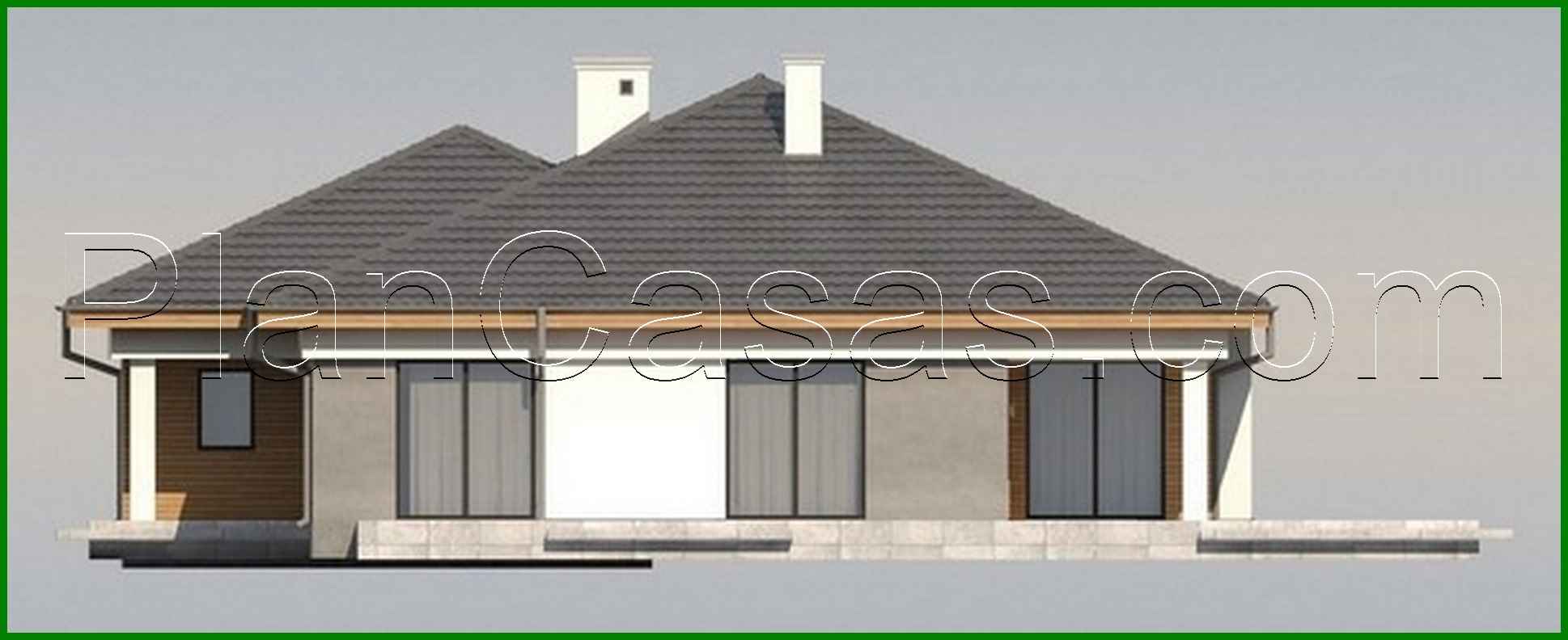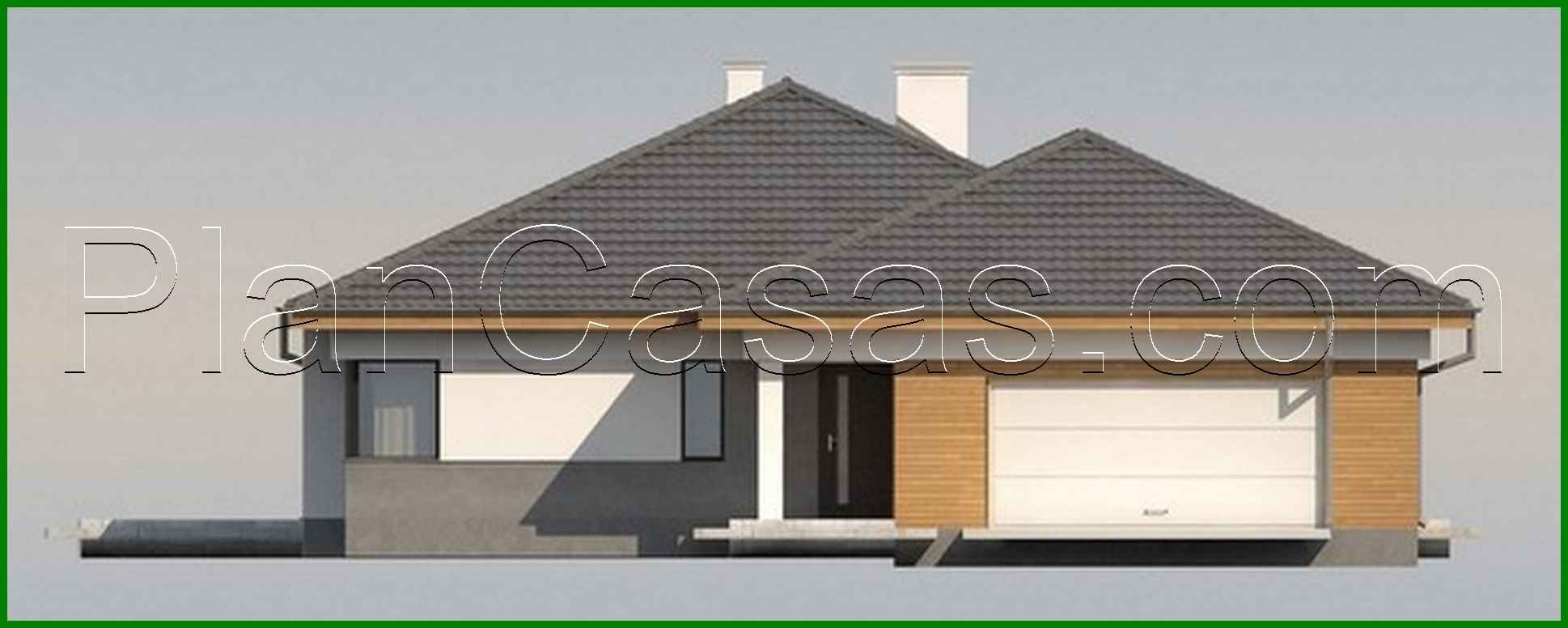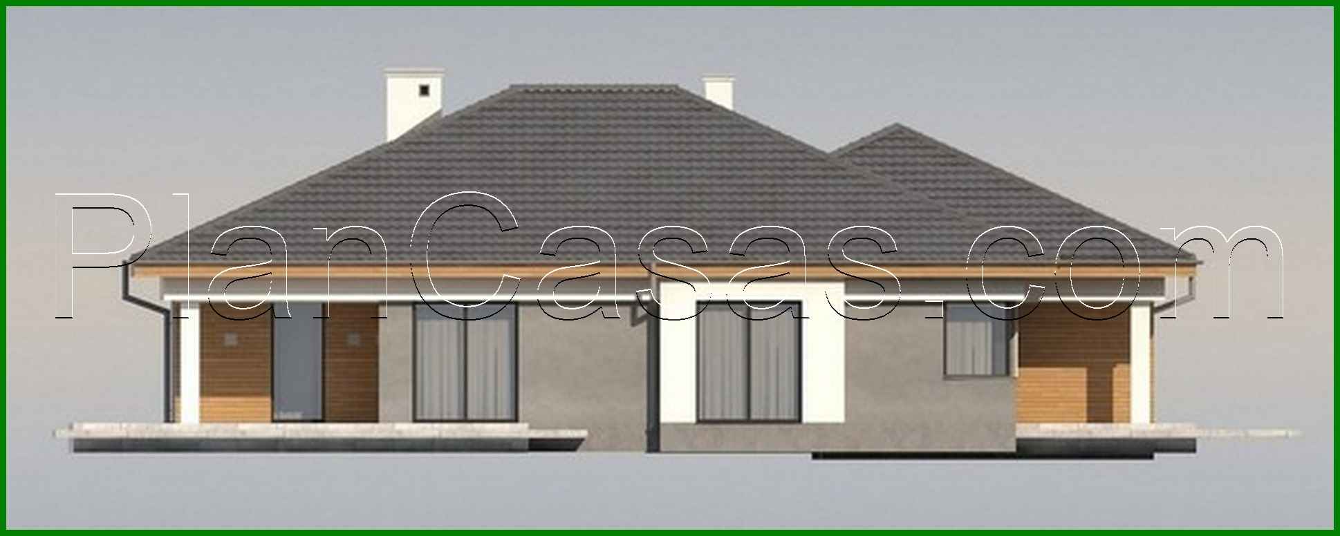 One-storey house project with bay window and terrace Number of floors: 1 Total area: 248.94 m2 Living Area: 111.92 m2 House height: 6.68 m Ceiling Height: 2.80 m Roof Angle: 24 ° Roof area: 345.00 m2 Cubic capacity: 507.00 m3 Number of bedrooms: 3 Number of bathrooms: 2 Garage: Two-car garage Minimum plot size (length): 26.84 m Minimum plot size (width): 23.44 m Built-up area: 234 m2 Materials: Walls: aerated concrete, ceramic blocks Ceiling: on wooden beams Roofing: ceramic tile, metal tile, cement-sand tile Foundation: monolithic tape band