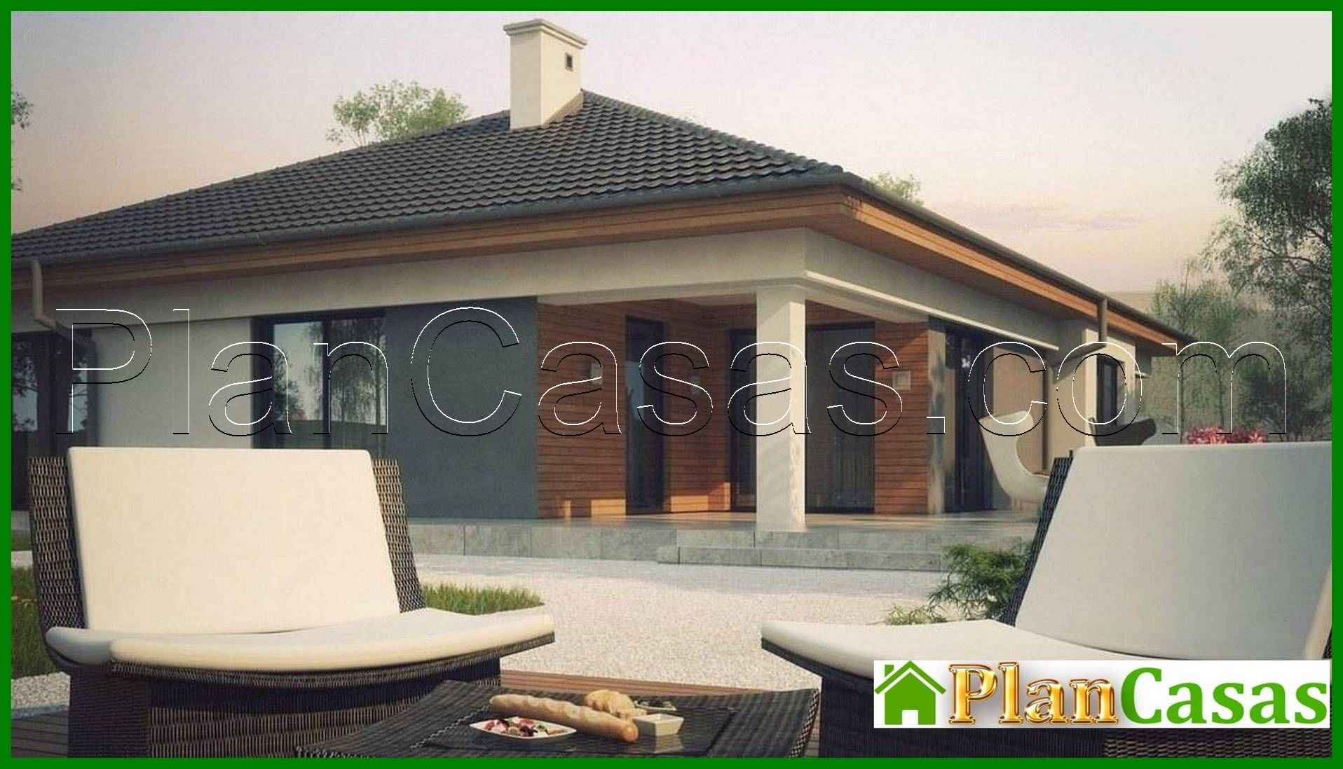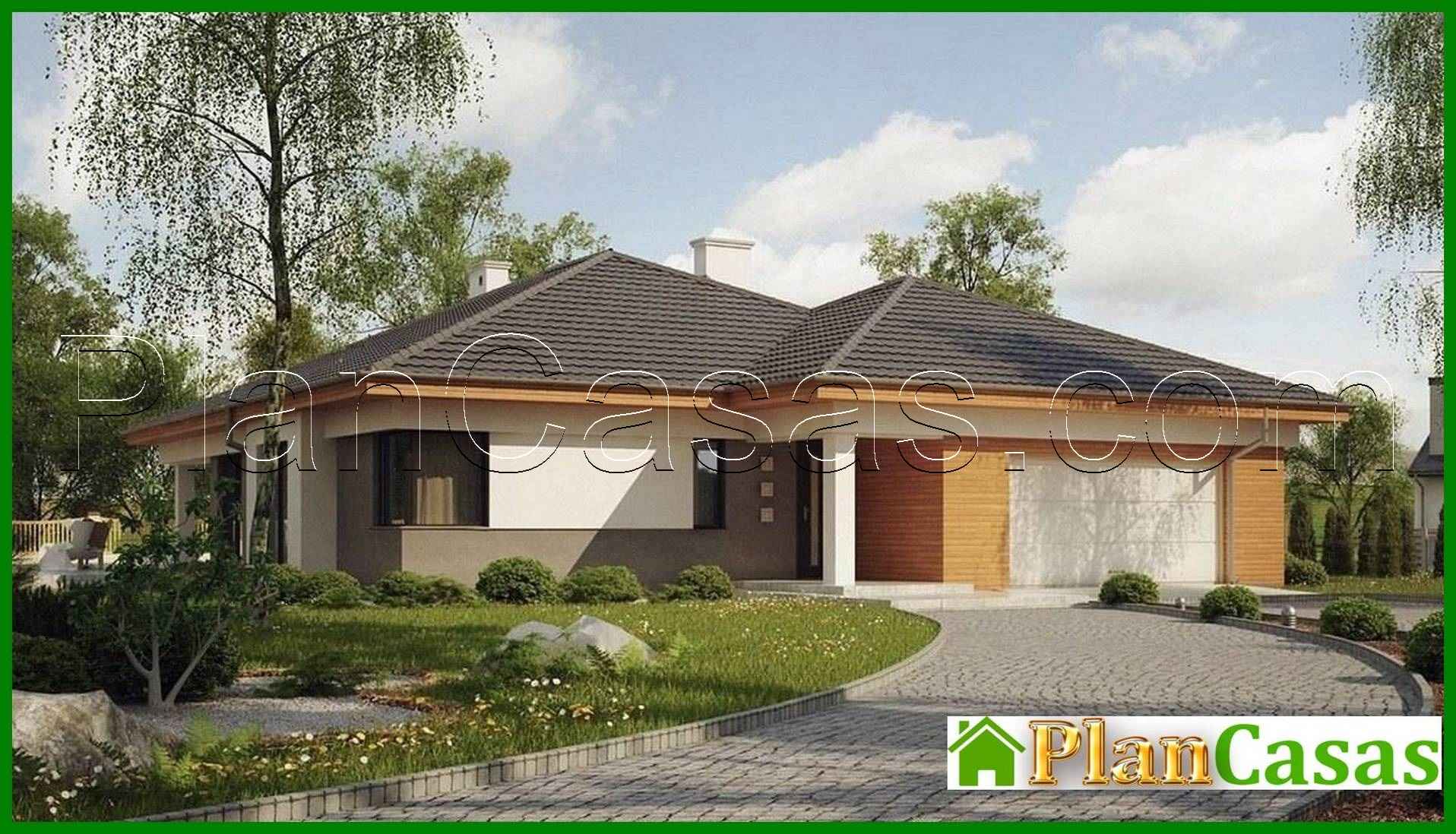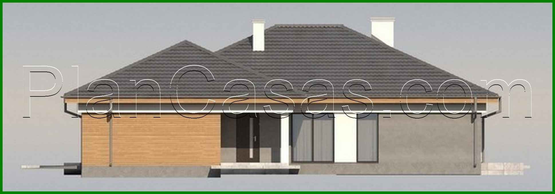One-storey house project with bay window and terrace Number of floors: 1 Total area: 248.94 m2 Living Area: 111.92 m2 House height: 6.68 m Ceiling Height: 2.80 m Roof Angle: 24 ° Roof area: 345.00 m2 Cubic capacity: 507.00 m3 Number of bedrooms: 3 Number of bathrooms: 2 Garage: Two-car garage Minimum plot size (length): 26.84 m Minimum plot size (width): 23.44 m Built-up area: 234 m2 Materials: Walls: aerated concrete, ceramic blocks Ceiling: on wooden beams Roofing: ceramic tile, metal tile, cement-sand tile Foundation: monolithic tape band