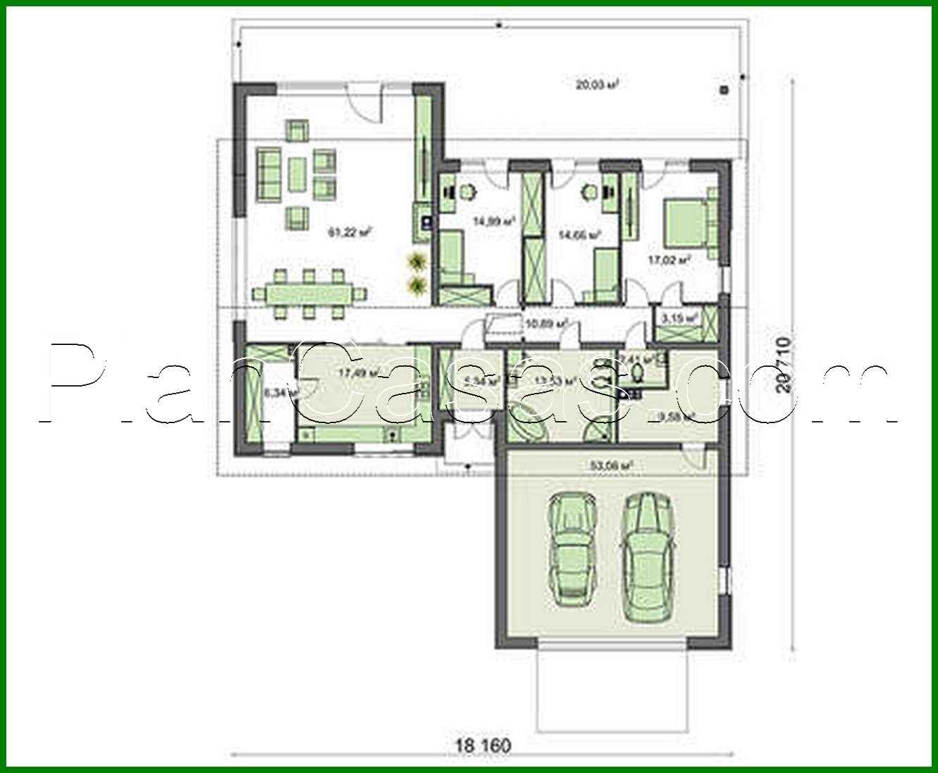 484. The project of a single-storey house of a simple form with a garage for two cars