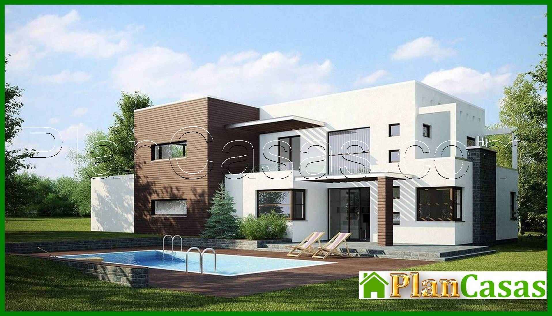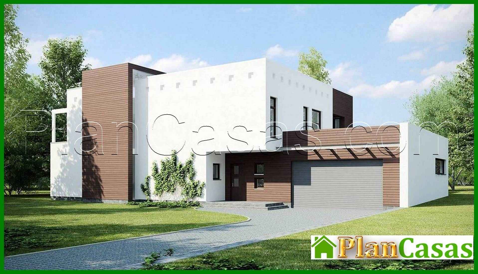 Design of a modern cottage with a spacious terrace above the garage Number of floors: 2 Total area: 314.00 m2 Living Area: 257.00 m2 House height: 8.00 m Ceiling Height: 2.80 m Roof Angle: 10 ° Roof area: 121.00 m2 Cubature: 951.00 m3 Number of bedrooms: 5 Number of bathrooms: 2 Garage: Two-car garage Minimum plot size (length): 31.00 m Minimum plot size (width): 20.00 m Materials: Walls: aerated concrete, ceramic blocks, silicate blocks Overlap: monolithic overlap Roofing: PVC membrane Foundation: monolithic tape band