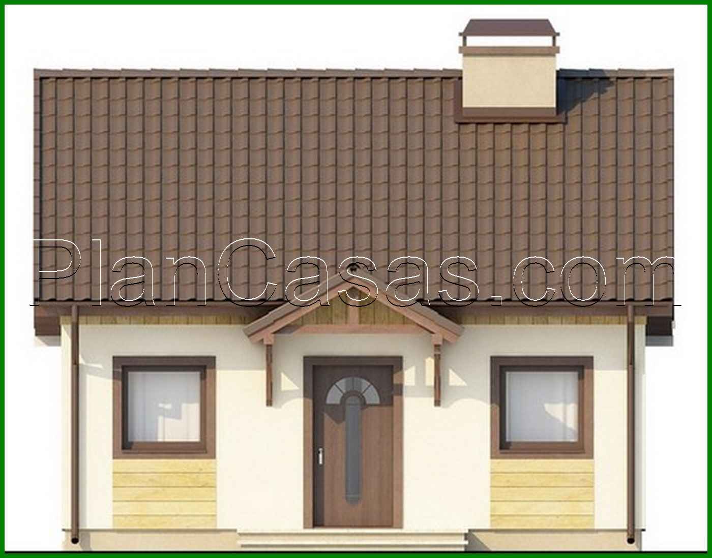 Project of a small house with a covered terrace Number of floors: 1 Total area: 44.00 m2 House height: 5.00 m Ceiling Height: 2.80 m Roof Angle: 30 ° Roof area: 106.00 m2 Cubic capacity: 117.00 m3 Number of bedrooms: 1 Number of bathrooms: 1 Minimum plot size (length): 15.00 m Minimum plot size (width): 13.00 m Materials: Walls: aerated concrete, ceramic blocks Ceiling: on wooden beams Roofing: ceramic tile, metal tile, cement-sand tile Foundation: monolithic tape band