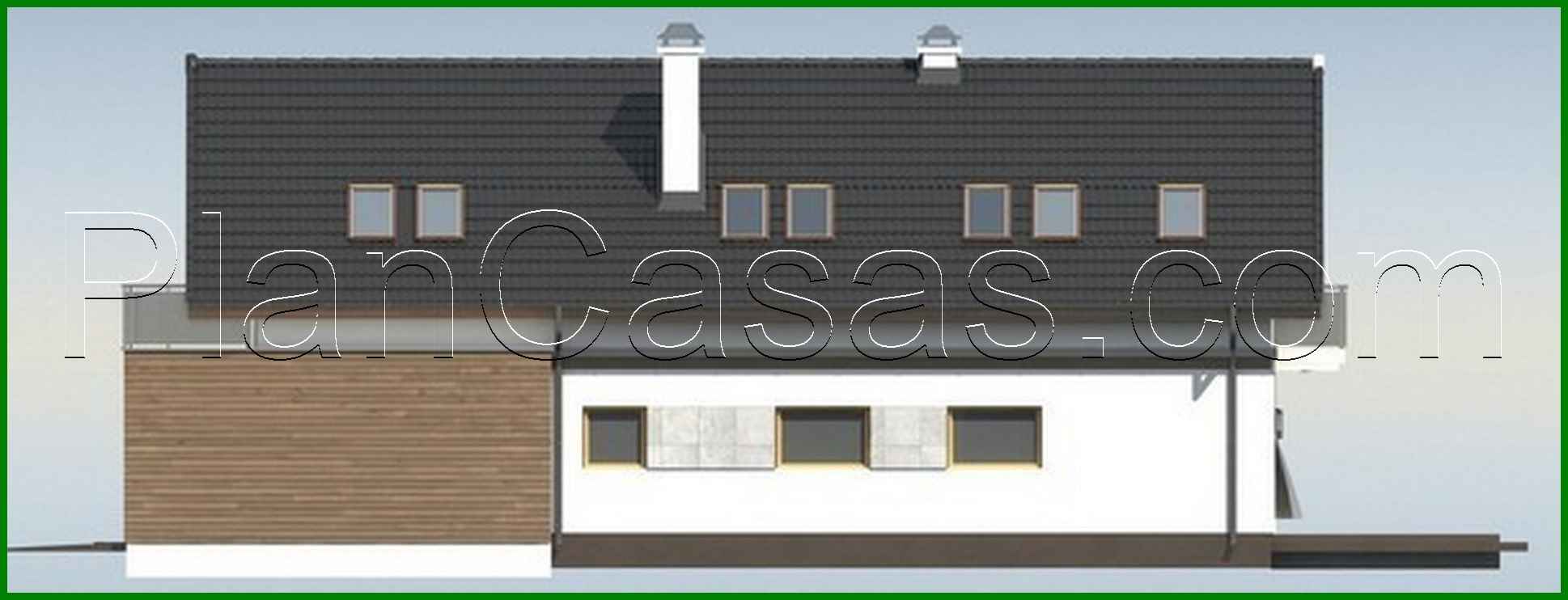 House project for a narrow plot with a terrace above the garage Number of floors: 2 Total area: 214.00 m2 Living Area: 163.00 m2 House height: 7.91 m Ceiling Height: 2.80 m Roof Angle: 40 ° Roof area: 212.00 m2 Cubature: 544.00 m3 Number of bedrooms: 3 Number of bathrooms: 3 Garage: Two-car garage Minimum plot size (length): 15.00 m Minimum plot size (width): 26.00 m Materials: Walls: aerated concrete, ceramic blocks Overlap: monolithic overlap Roofing: ceramic tile, metal tile, cement-sand tile Foundation: monolithic tape