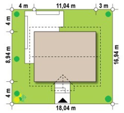 The project of a one-story house in a classic style Number of floors: 1 Total area: 79.30 m2 House height: 6.00 m Ceiling Height: 2.80 m Roof Angle: 30 ° Roof area: 158.00 m2 Cubic capacity: 210.00 m3 Number of bedrooms: 2 Number of bathrooms: 2 Minimum plot size (length): 18.04 m Minimum plot size (width): 16.94 m Materials: Walls: aerated concrete, ceramic blocks Ceiling: on wooden beams Roofing: ceramic tile, metal tile, cement-sand tile Foundation: monolithic tape band