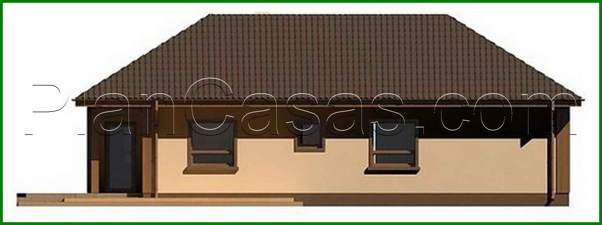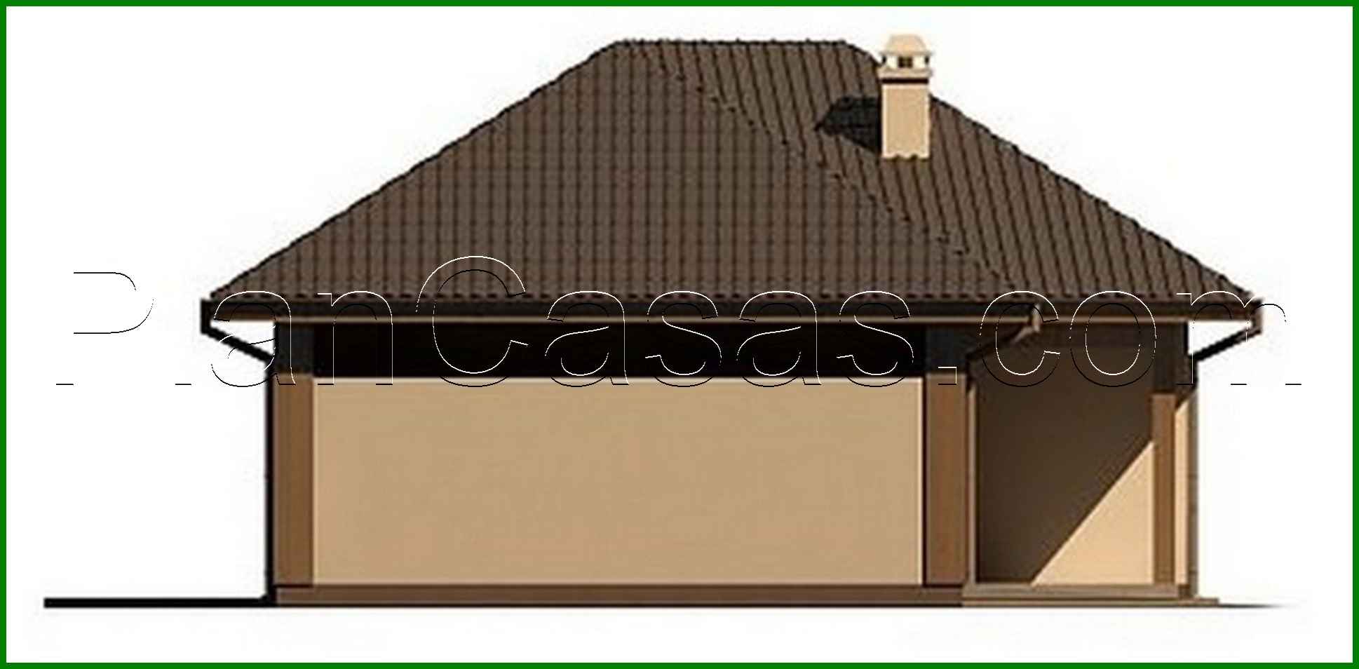 Project of a stylish one-story house with a garage Number of floors: 1 Total area: 100.00 m2 Living Area: 77.00 m2 House height: 6.00 m Ceiling Height: 2.80 m Roof Angle: 32 ° Roof area: 195.00 m2 Cubic capacity: 265.00 m3 Number of bedrooms: 3 Number of bathrooms: 1 Garage: Garage for one car Minimum plot size (length): 21.00 m Minimum plot size (width): 17.00 m Materials: Walls: aerated concrete, ceramic blocks Overlap: wooden Roofing: ceramic tile, metal tile, cement-sand tile Foundation: monolithic tape band