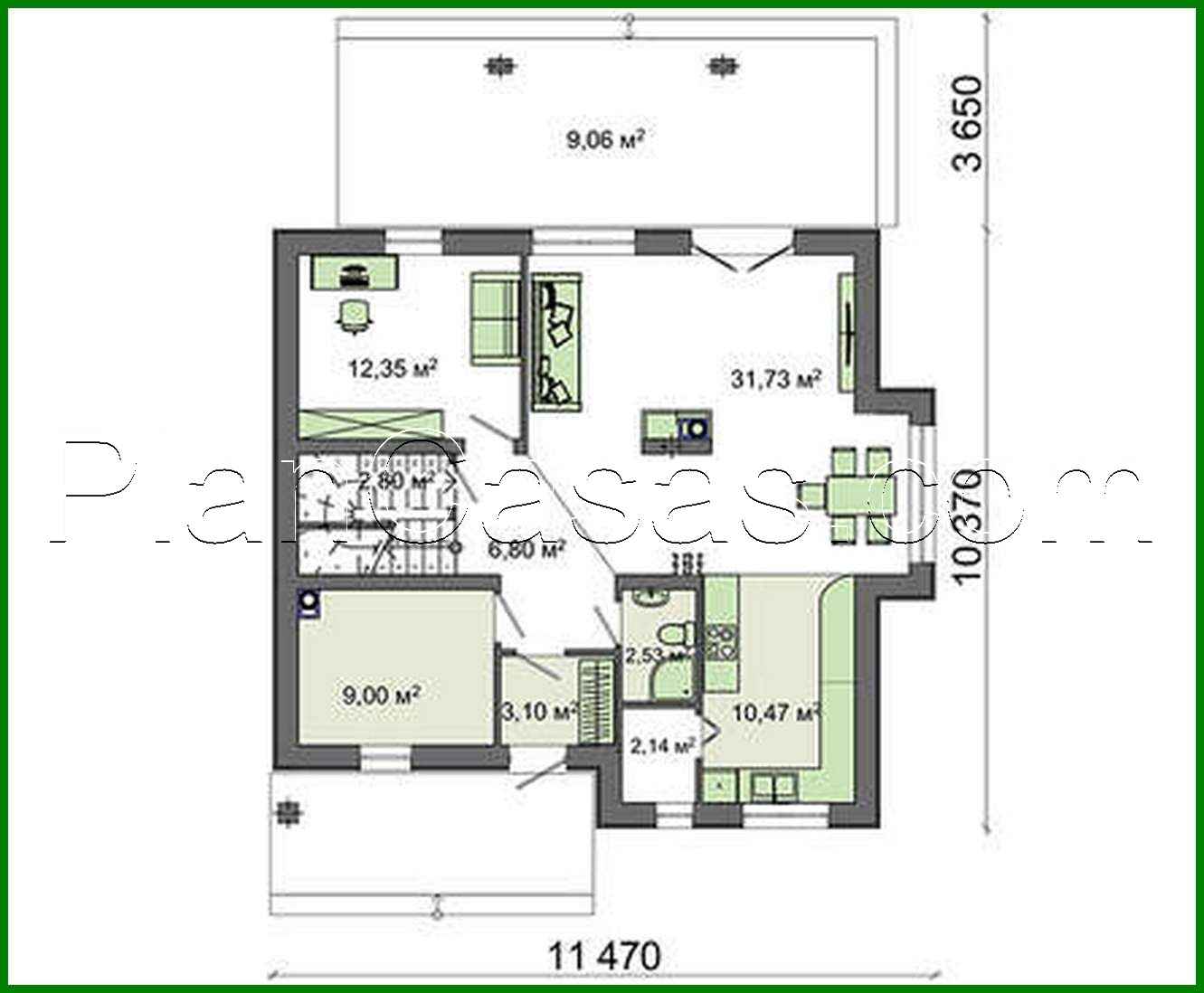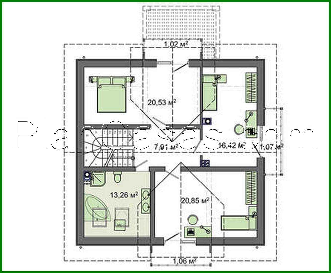 House project with a beautiful attic Number of floors: 2 Total area: 172.10 m2 Living Area: 101.88 m2 House height: 8.11 m Ceiling Height: 2.80 m Roof Angle: 35 ° Roof area: 182.00 m2 Number of bedrooms: 3 Number of bathrooms: 2 Minimum plot size (length): 18.50 m Minimum plot size (width): 19.00 m Built-up area: 159.25 m2 SIZES OF ROOMS Materials: Walls: aerated concrete blocks Overlap: monolithic overlap Roofing: metal tile, ceramic tile, bitumen Foundation: monolithic tape
