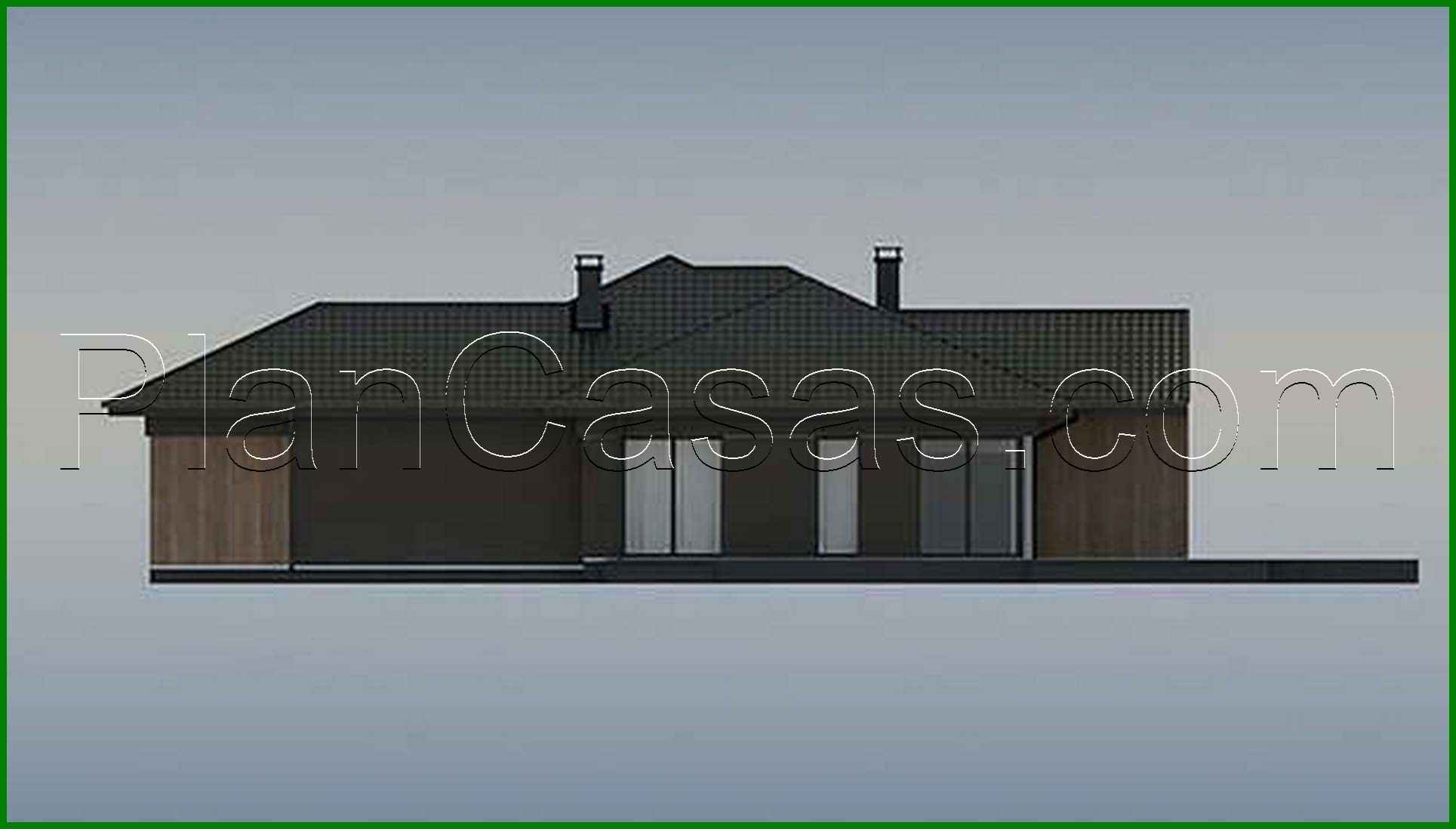 Project of an attractive cottage on 246 square meters. m with a spacious living room and stained-glass windows Number of floors: 1 Total area: 246.00 m2 Living Area: 192.00 m2 House height: 6.16 m Ceiling Height: 2.80 m Roof Angle: 24 ° ° Number of bedrooms: 4 Number of bathrooms: 2 Garage: Two-car garage Minimum plot size (length): 28.00 m Minimum plot size (width): 24.00 m Materials: Walls: aerated concrete, ceramic blocks Overlap: monolithic overlap Roofing: ceramic tile, metal tile, cement-sand tile Foundation: monolithic tape band