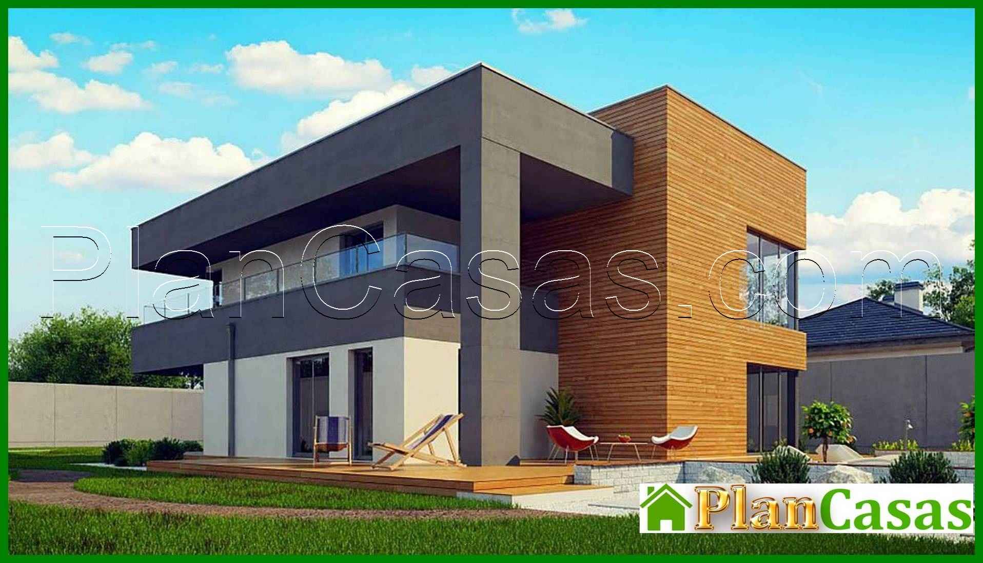 942. Modern two-story cottage with a flat roof with a garage for two cars